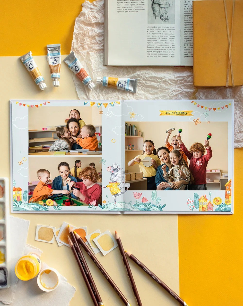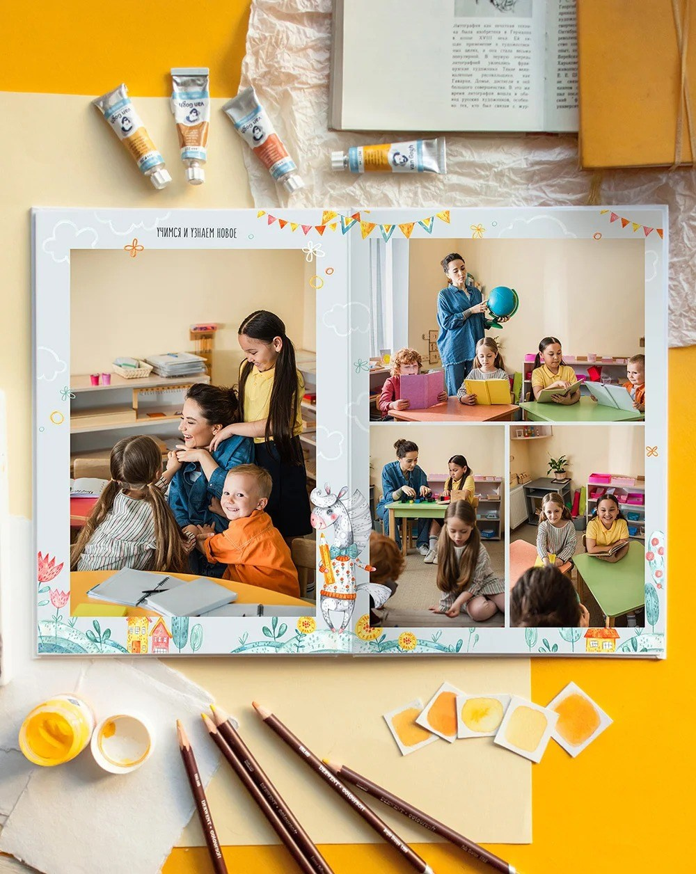 В данном разделе представлены примеры оформления обложки и внутренних разворотов альбома.