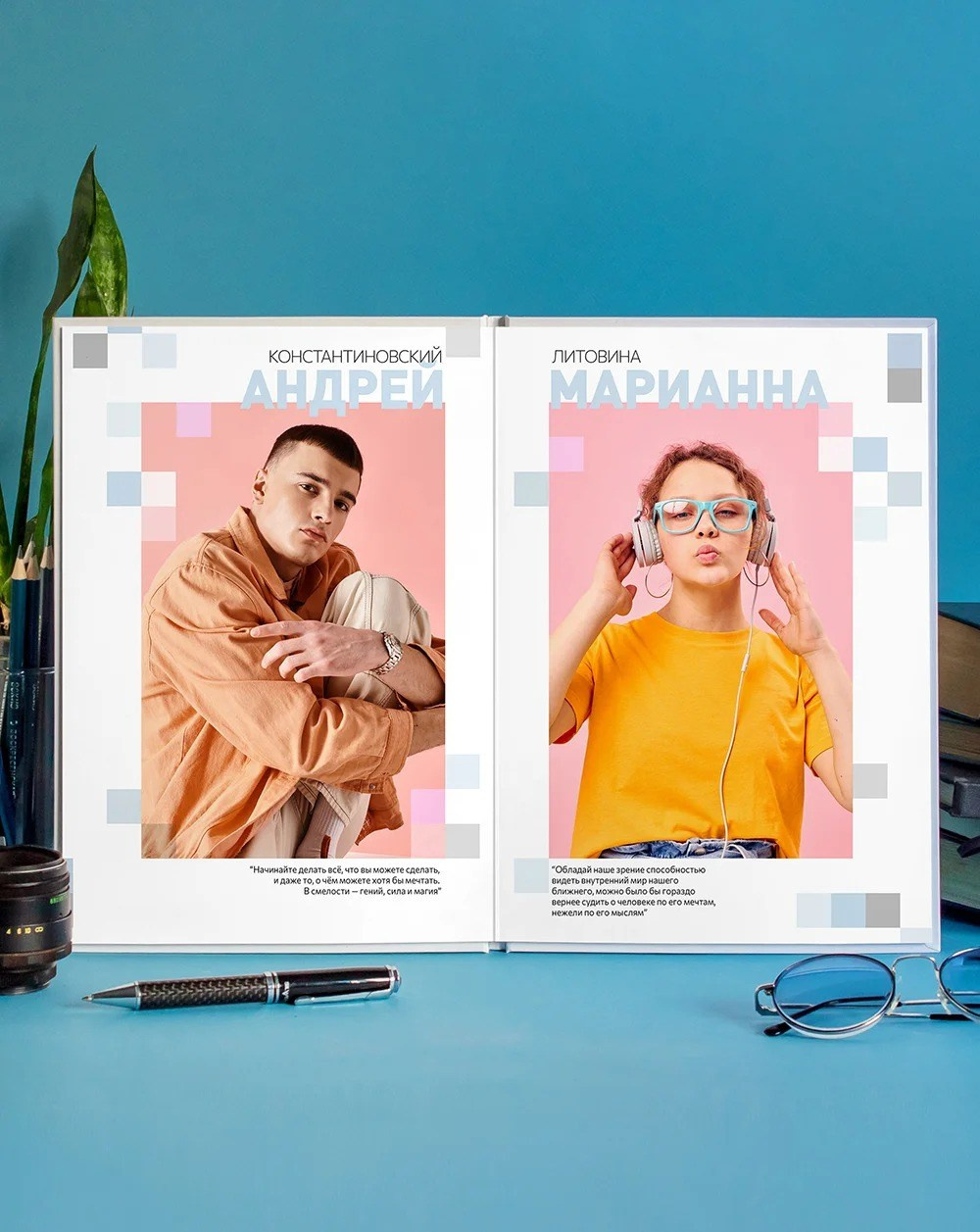 В данном разделе представлены примеры оформления обложки и внутренних разворотов альбома.