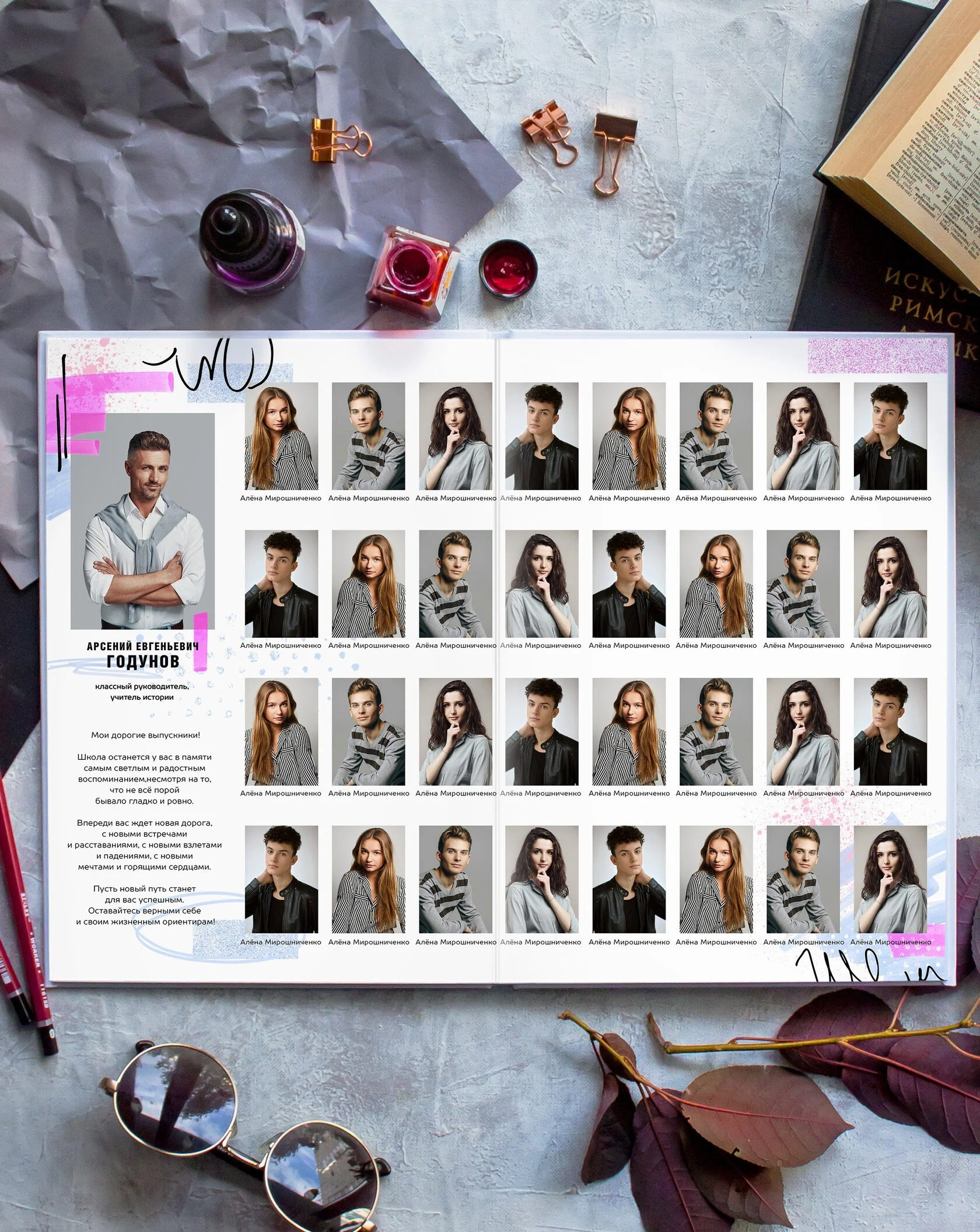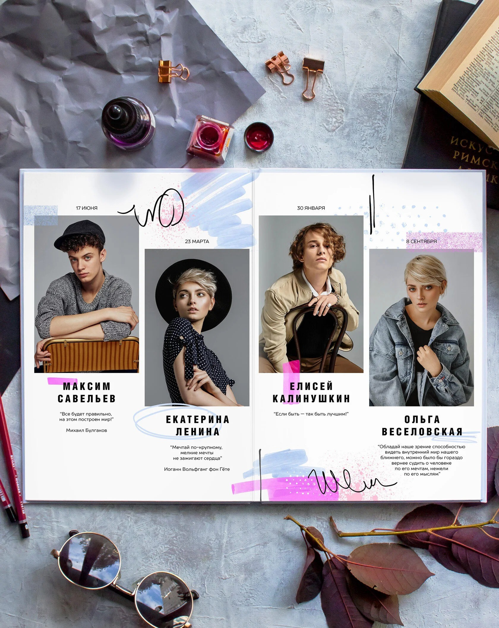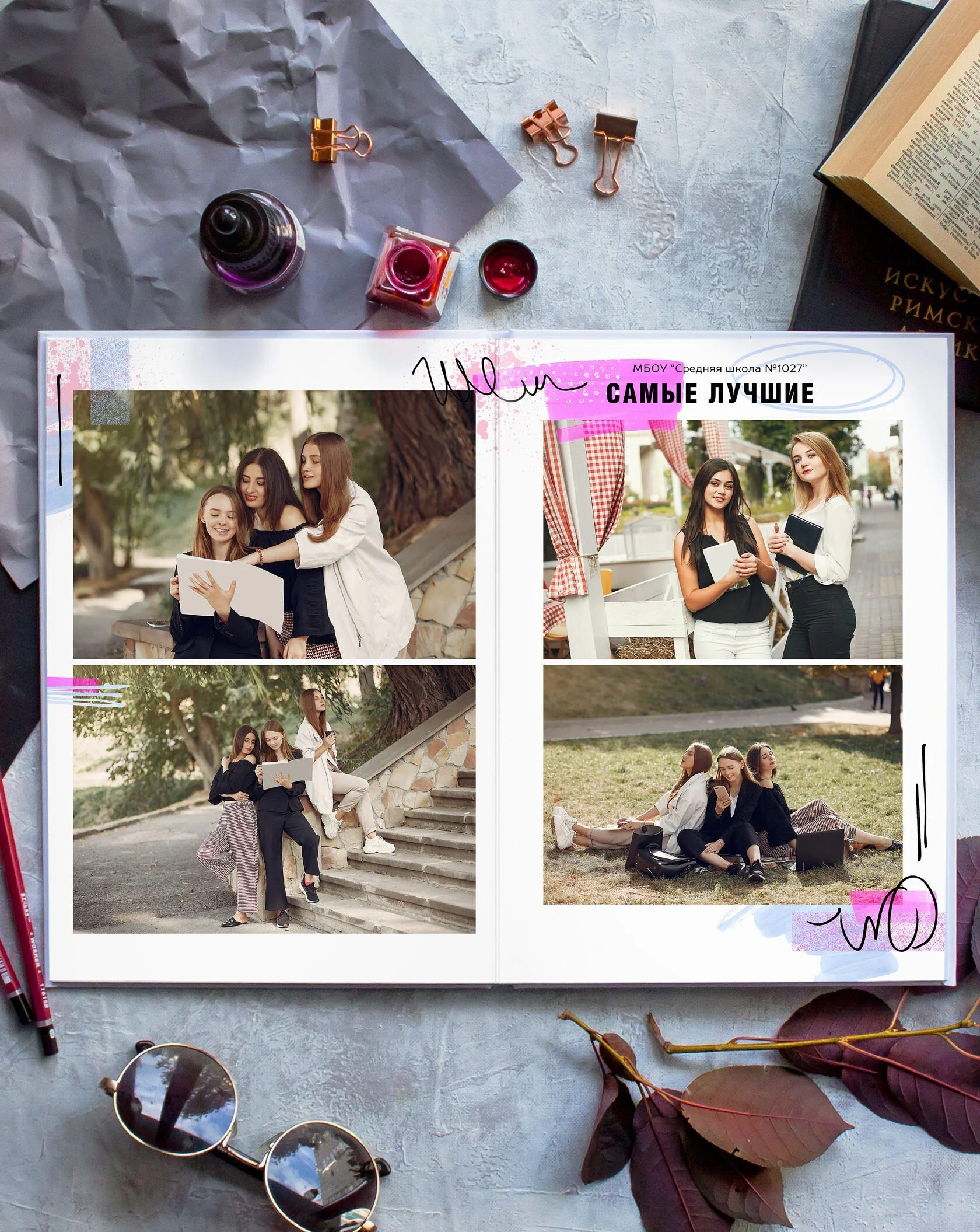 В данном разделе представлены примеры оформления обложки и внутренних разворотов альбома.