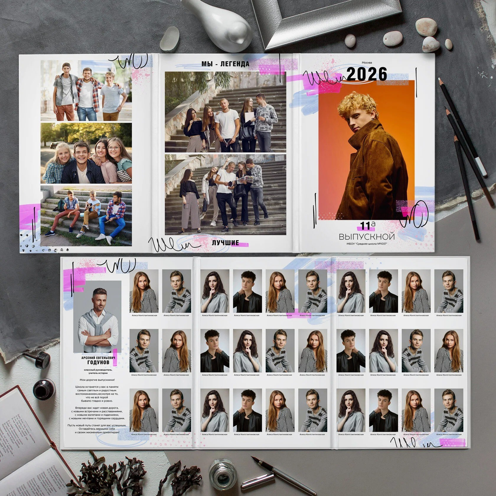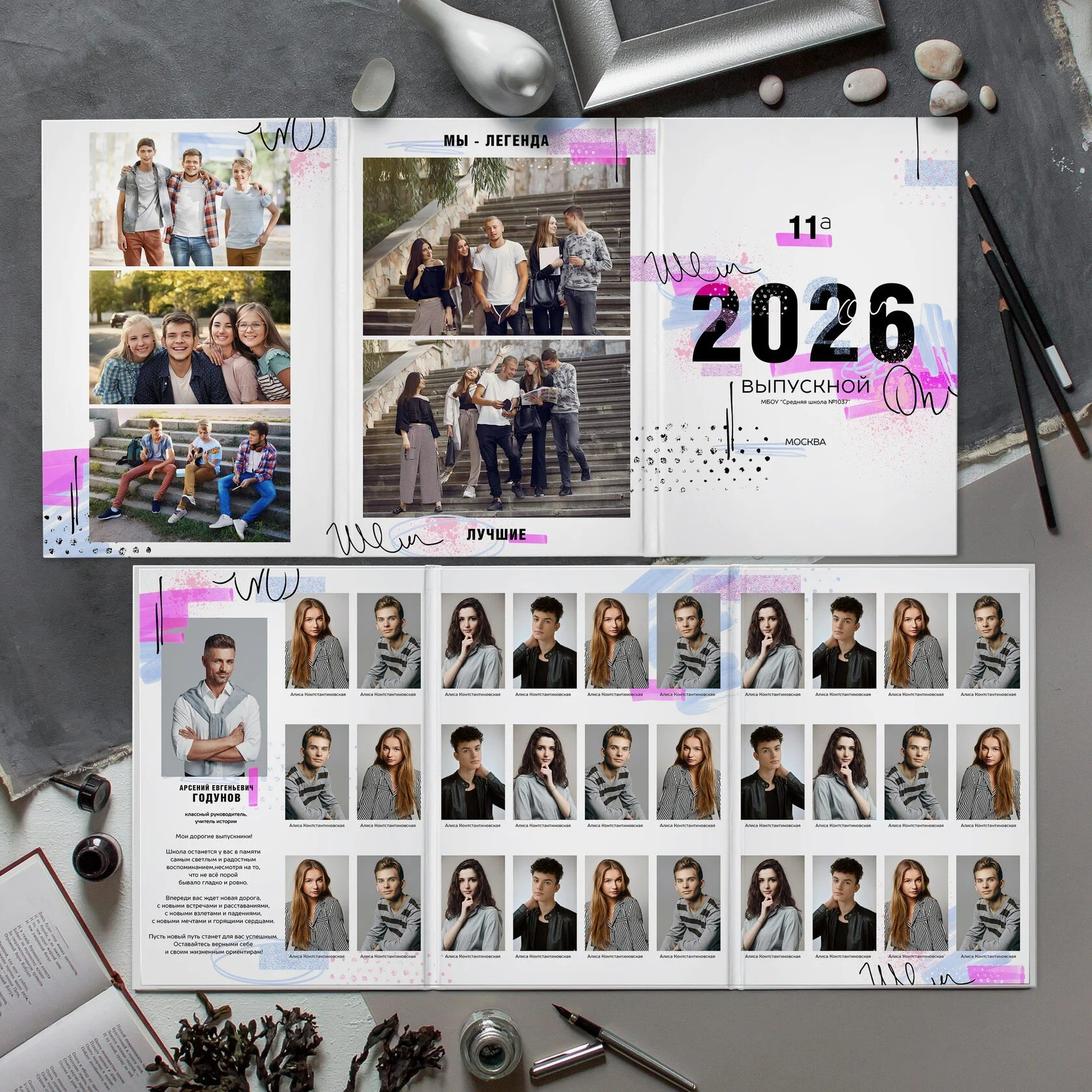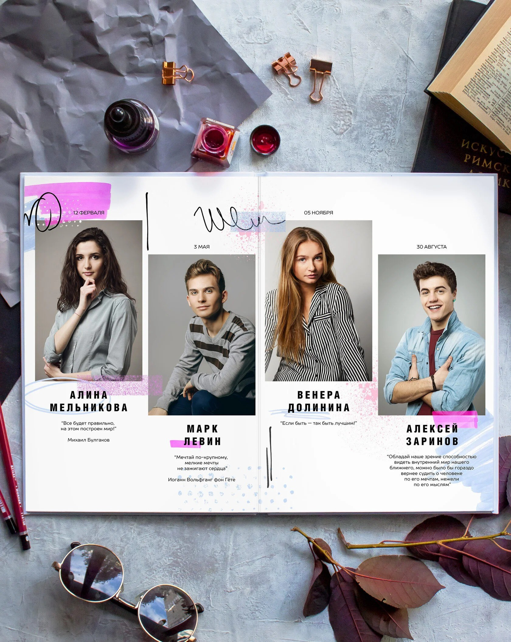 В данном разделе представлены примеры оформления обложки и внутренних разворотов альбома.