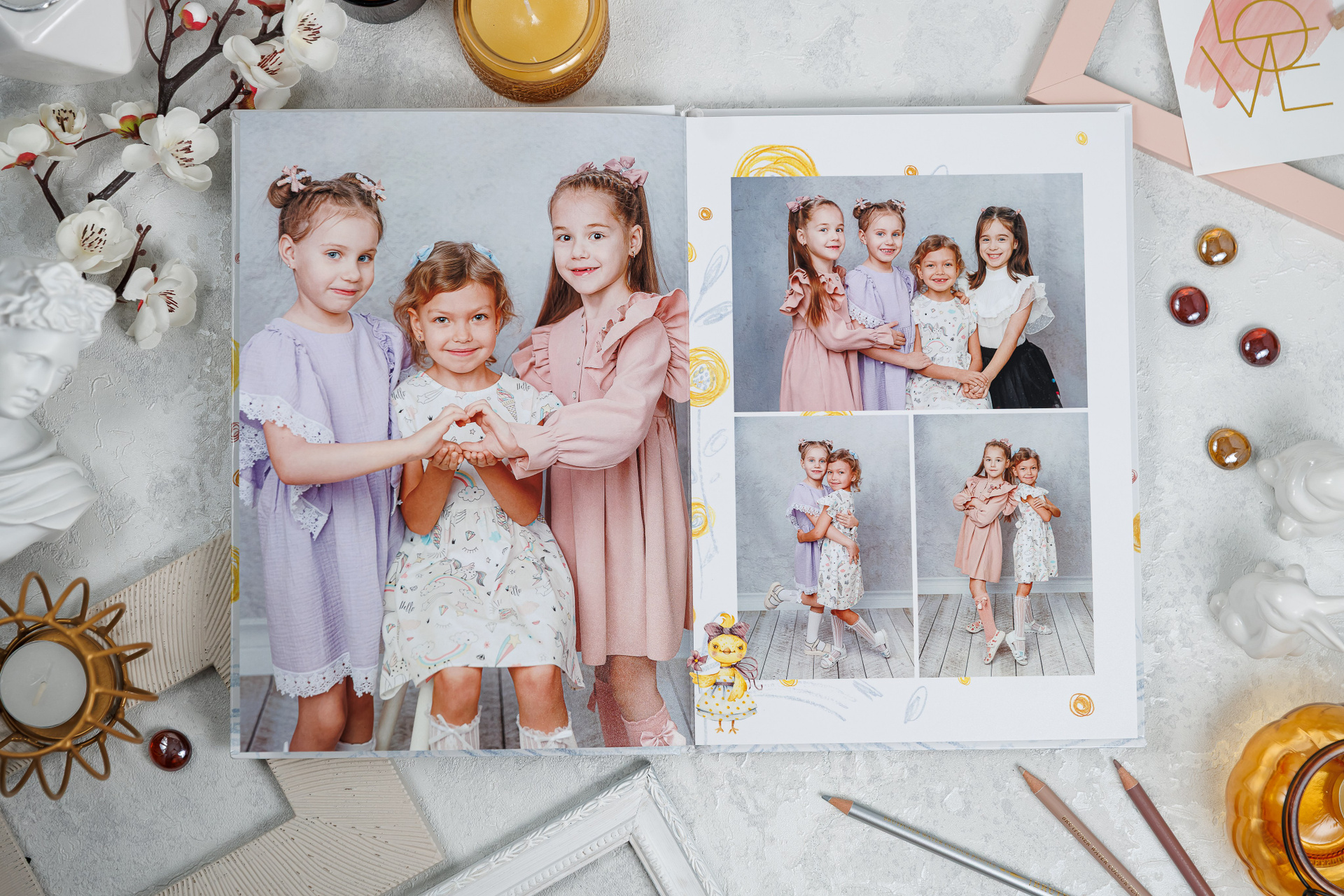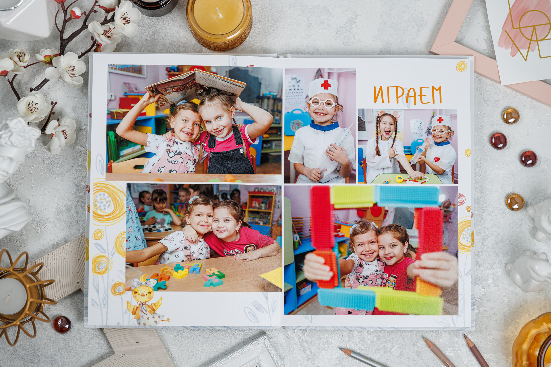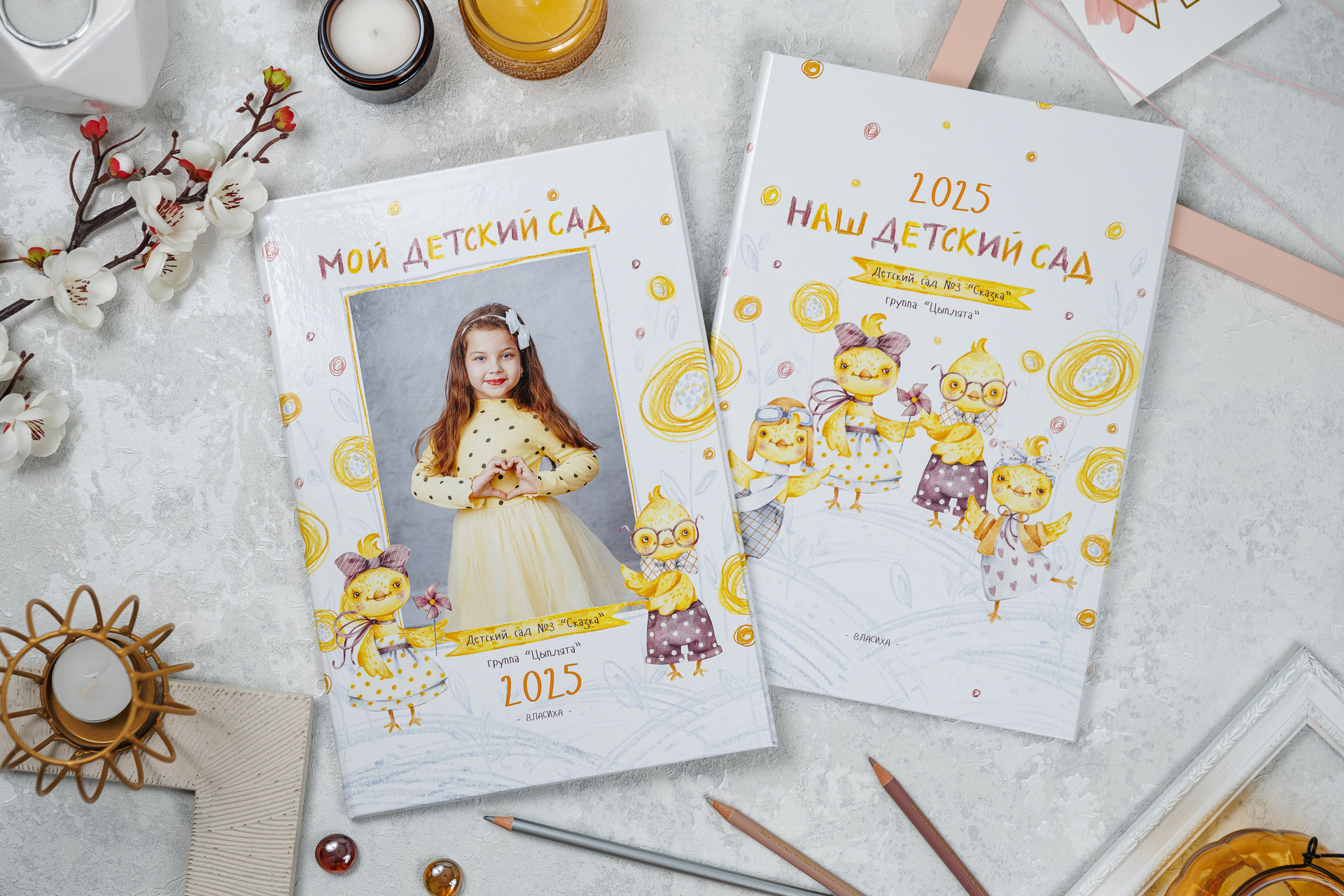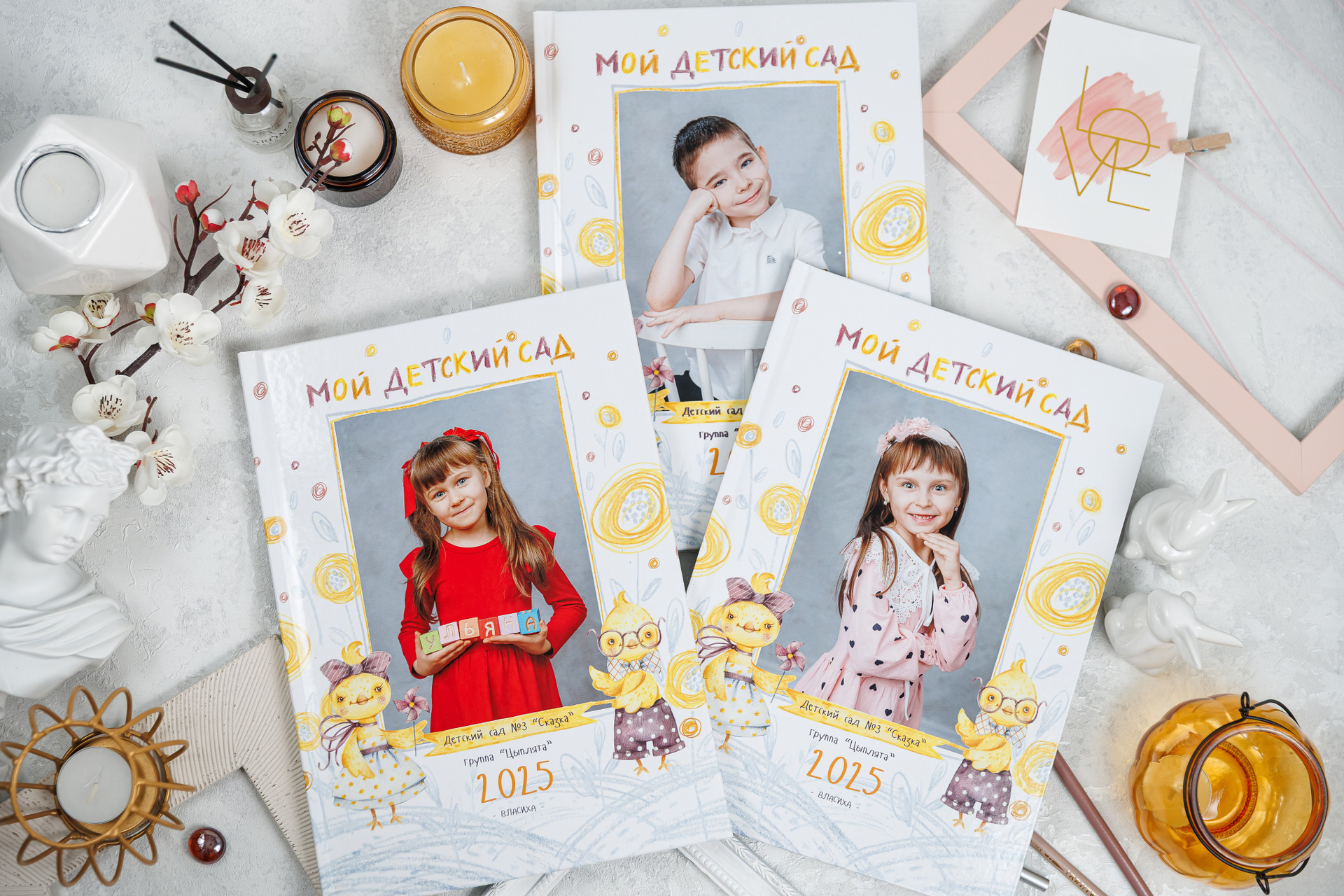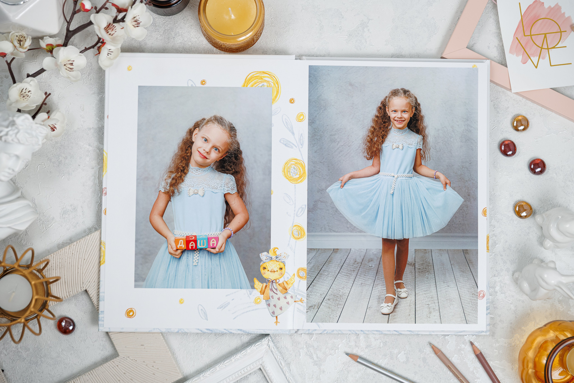 В данном разделе представлены примеры оформления обложки и внутренних разворотов альбома.